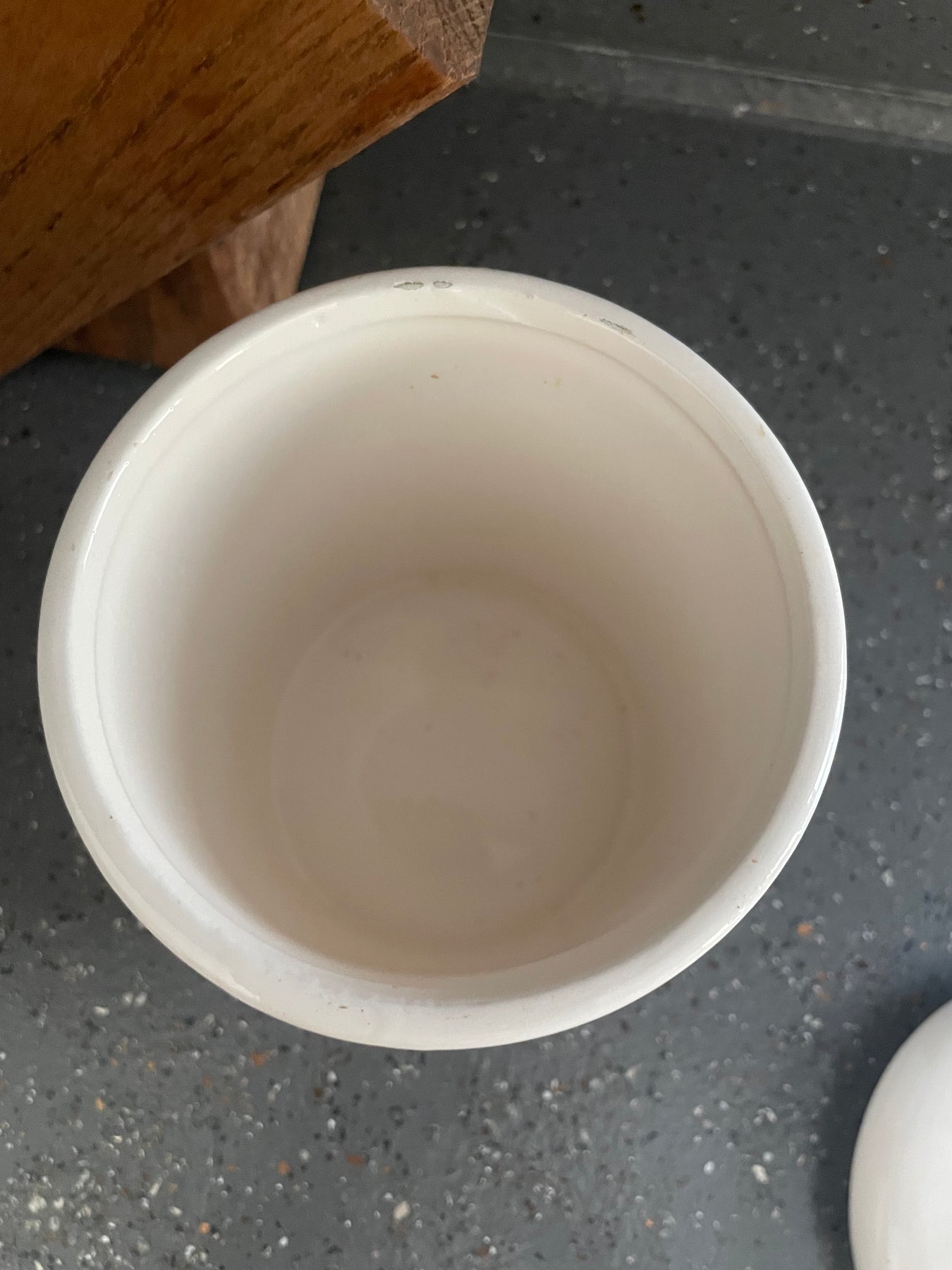 This vintage ceramic “Fat Can” is a charming nod to farmhouse kitchens of the past. Featuring a pink pig chef illustration and bold blue lettering, it’s both functional and full of personality.